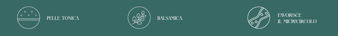 Balsamico, utile in caso di fastidi muscolari e affaticamento, stimola la circolazione sanguigna, ridona elasticità alla pelle. Utile come antibatterico naturale.